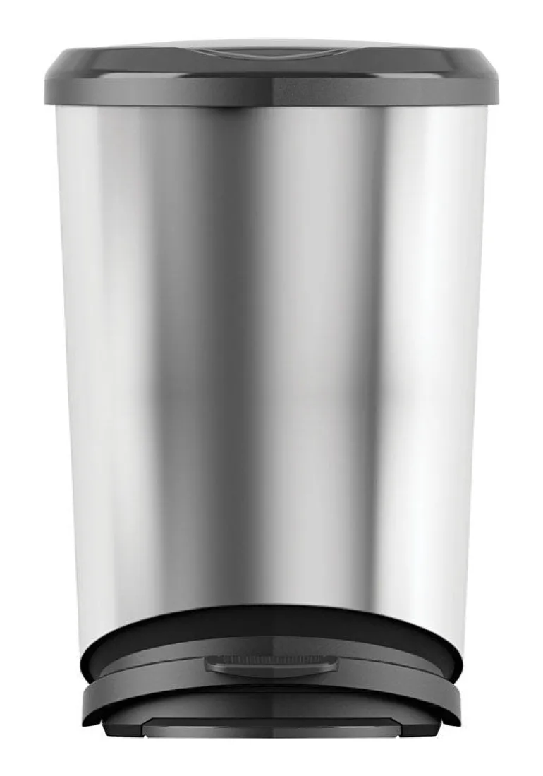 KIS Silver Stainless Steel Tondo Step On Large Wastebasket 11 gal. (Pack of 4)