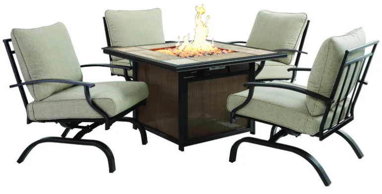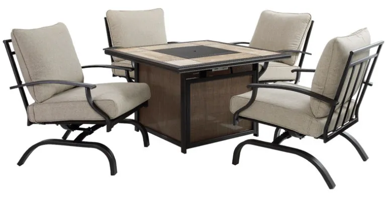Living Accents Halsted 5 pc Black Steel Fire Pit Chat Set Beige